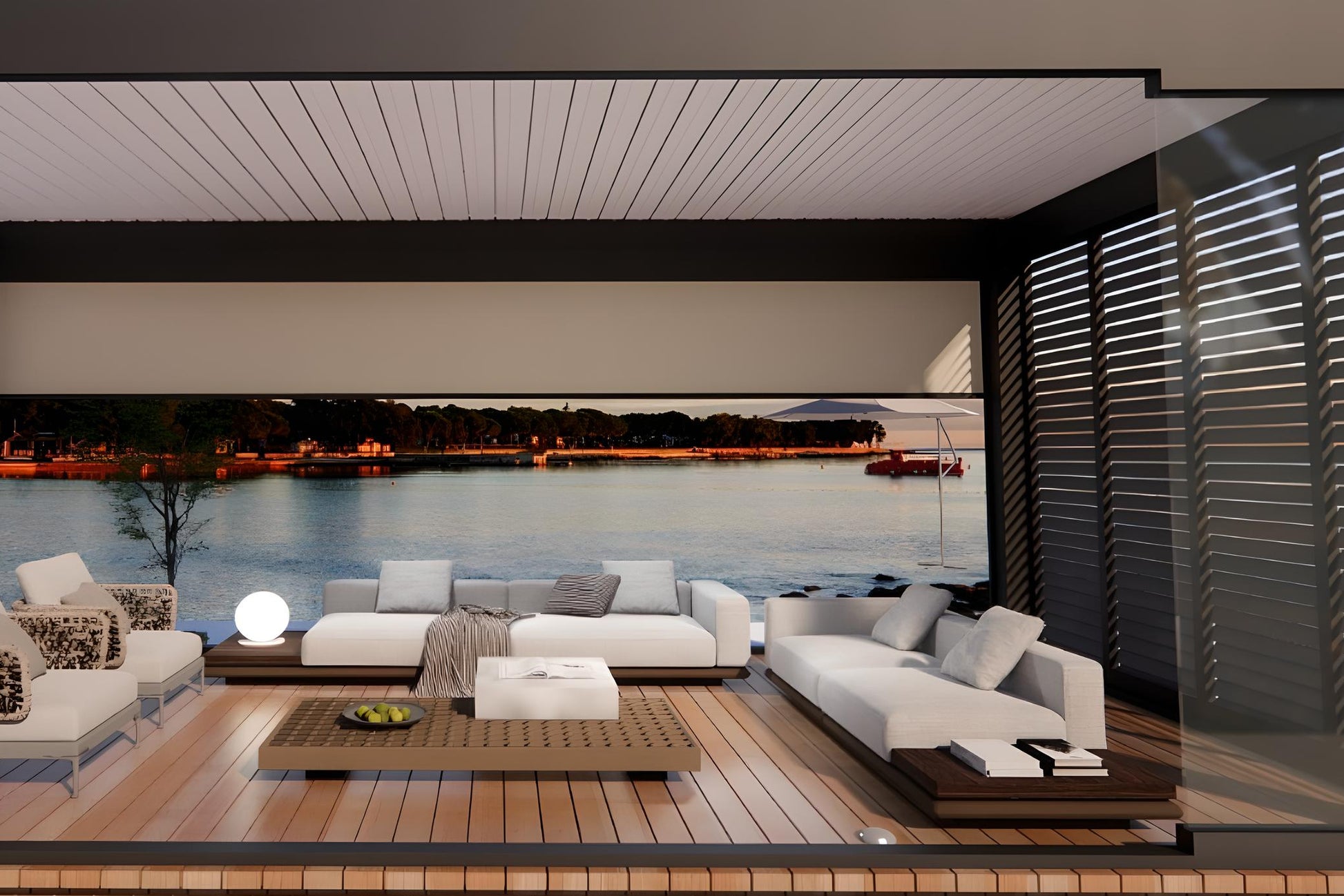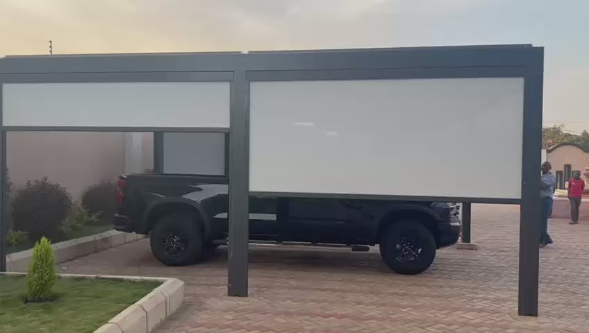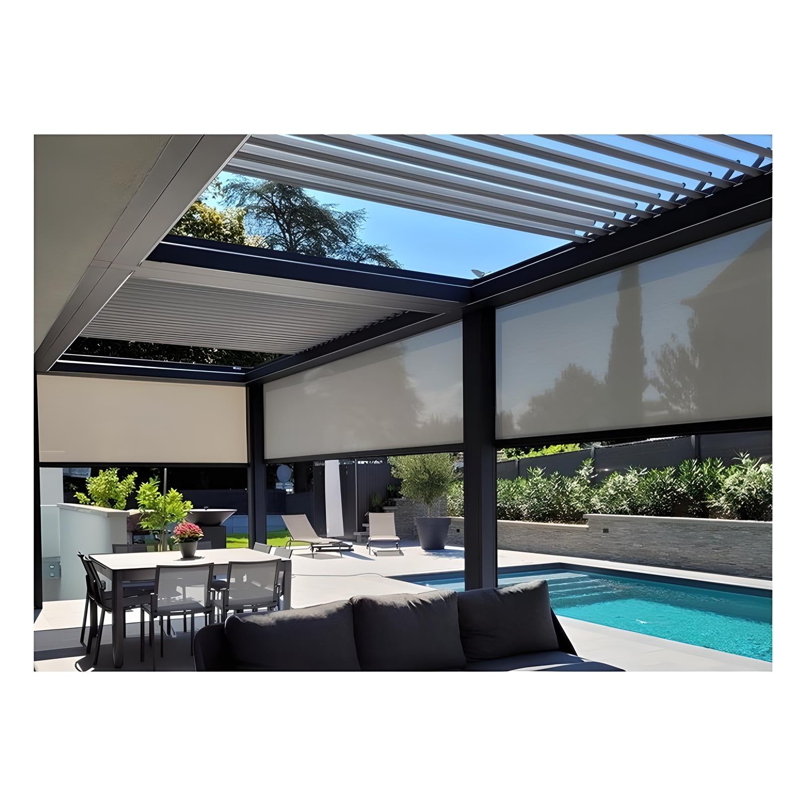 Experience the ultimate in convenience with our motorized blinds. Control light and privacy at the touch of a button, seamlessly integrating with your outdoor space. Perfect for creating the ideal atmosphere, our motorized blinds offer both style and functionality. This pergola is crafted from high-quality aluminum, it features a rotatable motorized roof with a remote control, making it snow-resistant up to 50lb/sqft, wind-resistant, and 100% waterproof.